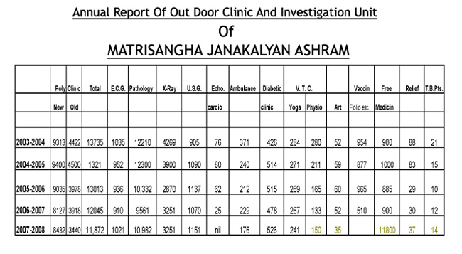Matrisangha Janakalyan Ashram’s medical facilities are enjoyed by a cross section of the society right from the poorest to low and middle income group of people.